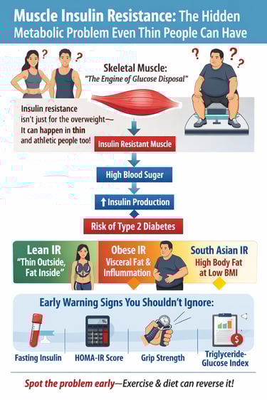 Discover the 3 hidden types of insulin resistance—lean, obese, and the South Asian metabolic phenotype. Learn early warning signs, biomarkers, and prevention strategies.