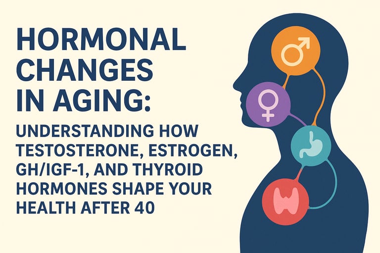 Discover how testosterone, estrogen, GH/IGF-1, and thyroid hormones change after 40—and learn evidence-based strategies to maintain muscle, vitality, and hormonal health for optimal aging