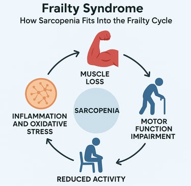 Discover how sarcopenia drives frailty syndrome and accelerates functional decline in older adults. Explore the Fried Frailty Criteria, the muscle-mitochondria link, and evidence-based strategies—exercise, nutrition, and emerging therapies—to prevent and reverse frailty, improve independence, and enhance quality of life.