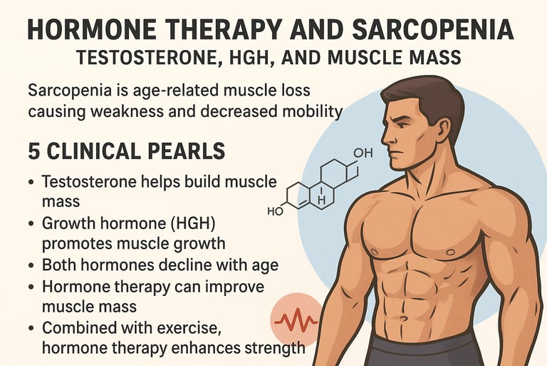 Explore how testosterone, growth hormone, and other hormones influence age-related muscle loss. Learn the science, evidence, and clinical insights behind hormone therapy for sarcopenia.