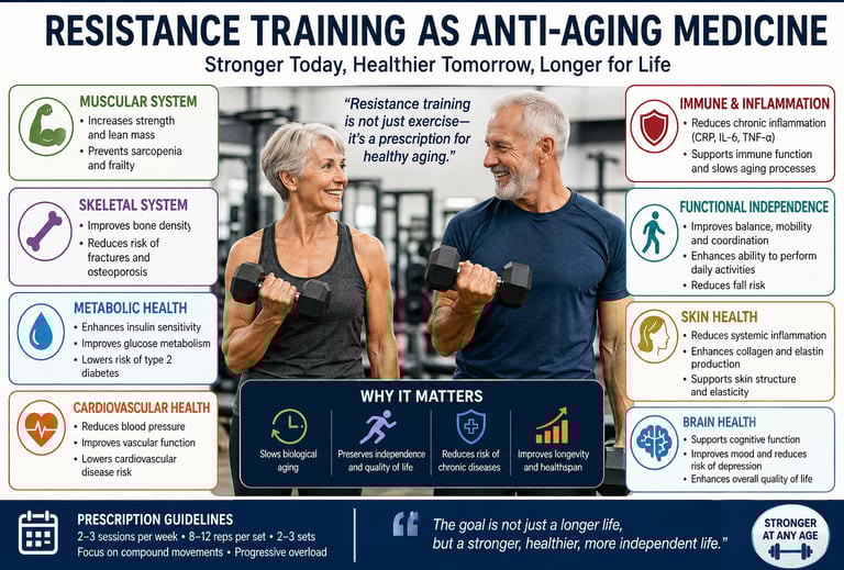 In this context, resistance training is not merely exercise—it is increasingly recognized as a cornerstone intervention in preventive and longevity medicine.