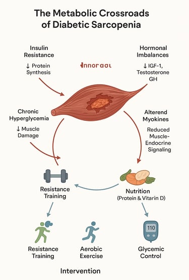 "Discover how type 2 diabetes accelerates muscle loss and learn evidence-based strategies to prevent, manage, and even reverse diabetic sarcopenia. Explore the latest research on exercise, nutrition, and metabolic interventions to preserve strength, independence, and metabolic health."
